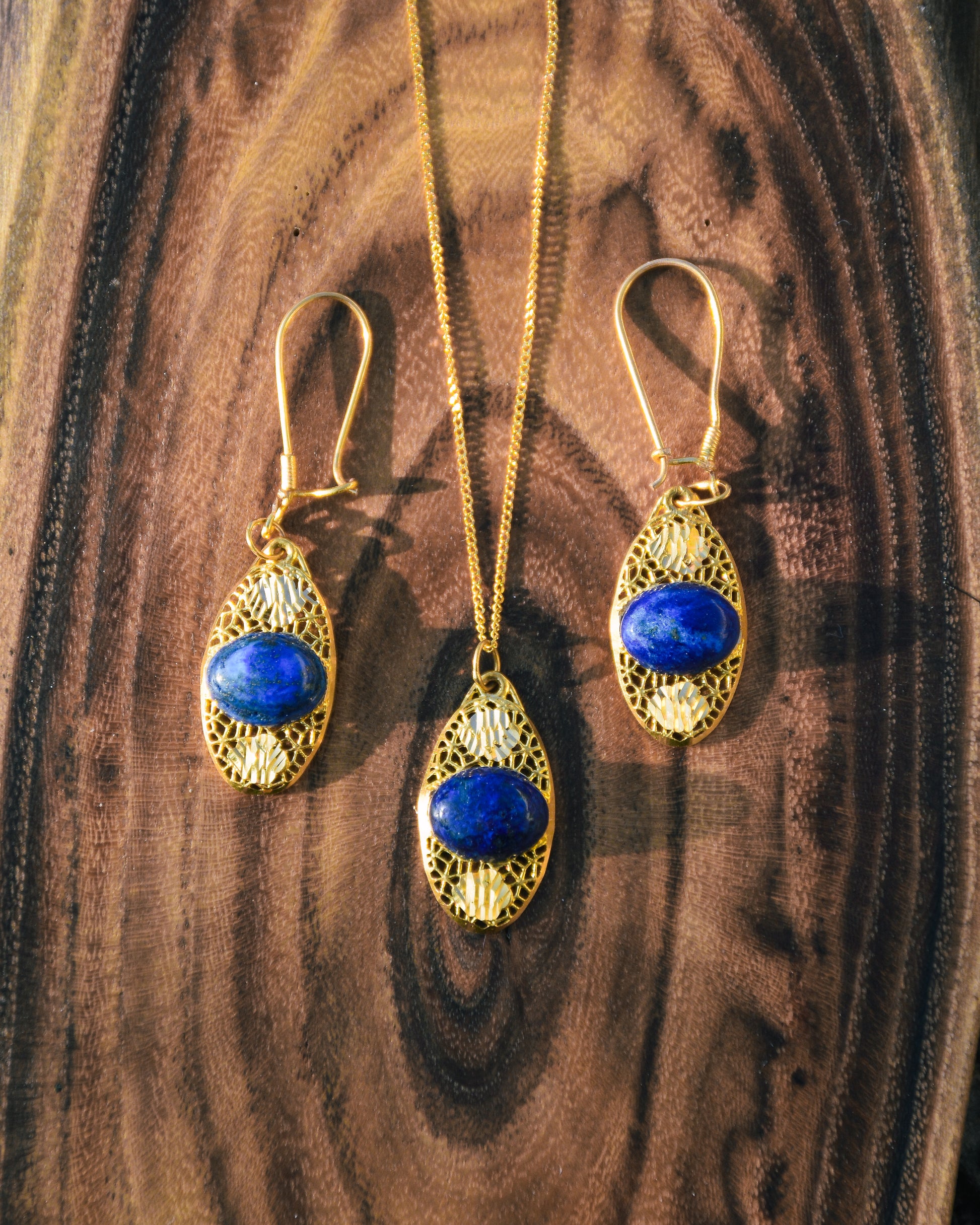 .لە لاپیز (لازۆرد)ی سروشتی و زێڕی عەیار ٢١، بە دەست دروستکراوە